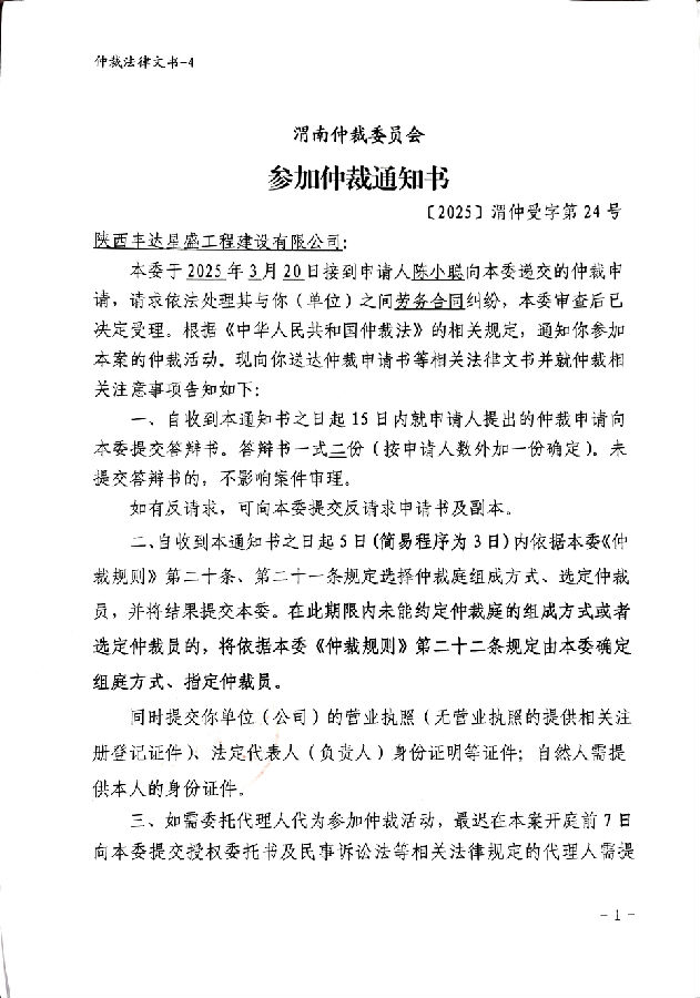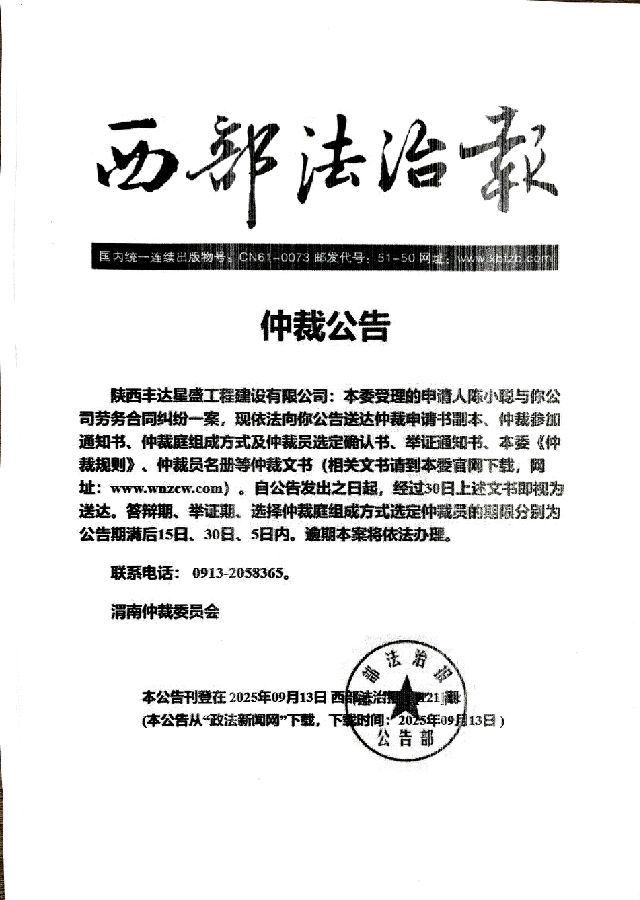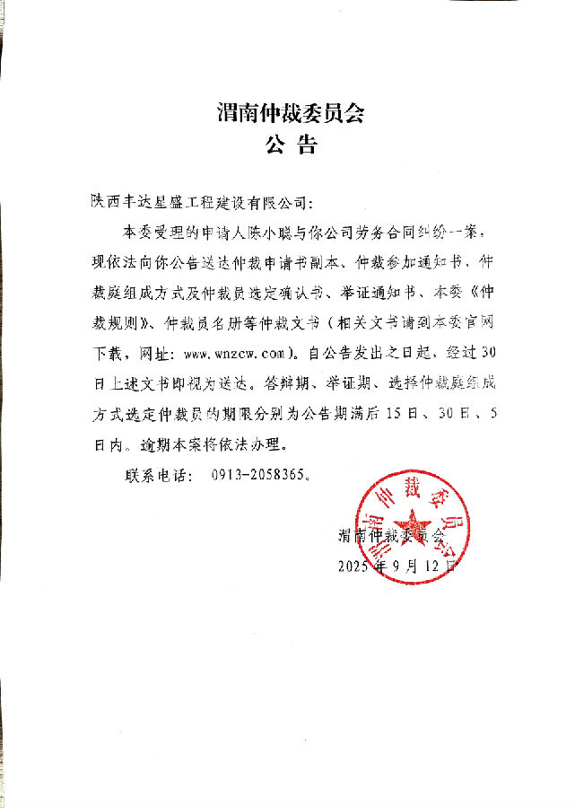 陳小聰與陜西豐達(dá)星盛工程建設(shè)有限公司勞務(wù)合同糾紛案公告